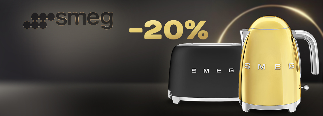 Скидка 20% на чайник Smeg при покупке комплекта из чайника и тостера. Предложение действует до 30 ноября 2023 года, или пока товары есть в наличии. Распространяется на товары из списка ниже.