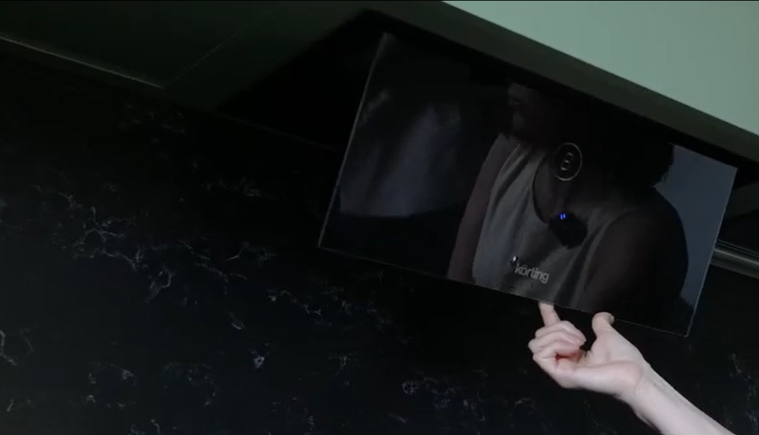 - Встраивание в столешницу чаще предусматривает совместное приобретение вытяжки и варочной панели. В большинстве случаев вытяжка автоматически выдвигается при включении хотя бы одной конфорки: весь ее механизм в закрытом состоянии находится в тумбе под столешницей. Преимущество этого тип вытяжек в том, что все испарения всасываются на месте, не распространяясь по помещению.