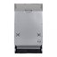 Узкая посудомойка с полным встраиванием устанавливается в обычную кухонную тумбу: крепежный набор поставляется вместе с устройством, а установку облегчают стандартные размеры — ширина 45 см, глубина 55 см и высота 81,5 см. спереди машина закрывается кухонным фасадом, к которому крепится ручка. Монтажный трафарет для точного крепления фасада также идет в комплекте.