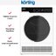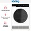 Korting KD 60L97 — отдельно стоящая сушильная машина для дома в корпусе белого цвета, с большим черным люком и черной панелью управления. Ее особенность — эффектная подсветка барабана во время работы. Сушилка может быть размещена бок о бок со стиральной машиной Кертинг или для экономии места может устанавливаться на нее сверху: закрепить ее поможет специальный соединитель. Максимальный вес загрузки составляет 10 кг влажного белья: модель подойдет для использования в большой семье или для регулярного ухода за детской одеждой. Специалисты рекомендуют не загружать машину максимально, чтобы белье просушивалось более равномерно. Люк открывается на угол до 135 градусов, так что объемные вещи помещаются в барабан без усилий.