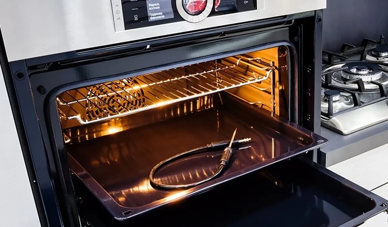 - Освободите пространство. Уберите посуду и аксессуары из духовки, проверьте, что доступ к задней стенке свободен.