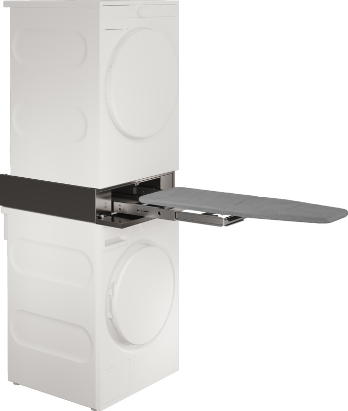 Выдвижная гладильная доска цвета титан устанавливается в колонну между сушильной и стиральной машиной.