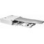Выдвижная гладильная доска белого цвета устанавливается в колонну между сушильной и стиральной машиной.