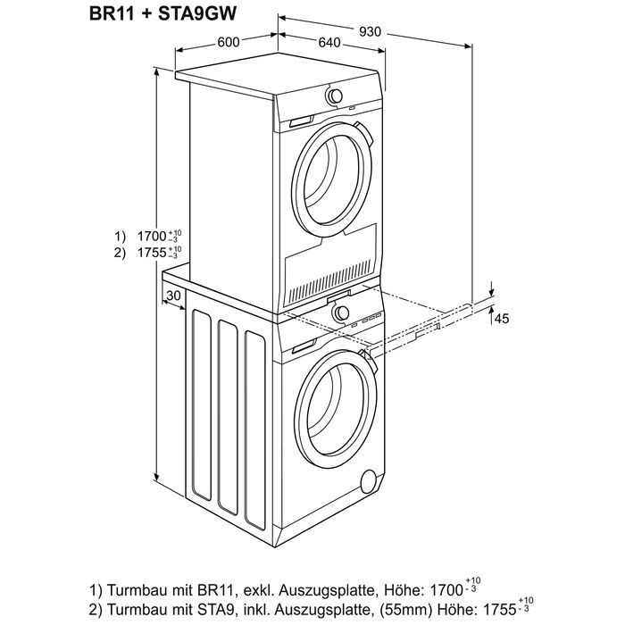 Планка для установки сушильного барабана на стиральную машину в колонну. Полка для белья выдвигается на 34 см. Подходит моделям Electrolux, AEG.