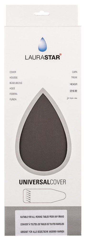 Laurastar Cover Universal Grey Packaged — чехол универсального темно-серого цвета. Толщина облегчает глажение, материалы пропускают через себя только нужное количество пара, а резинка позволяет легко закрепить его на доске, что обеспечивает идеальное скольжение.