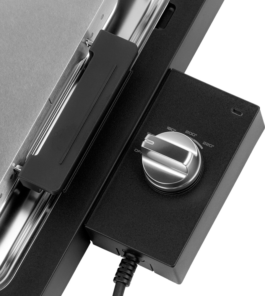 Благодаря продуманной конструкции гриль-теппан можно использовать как для приготовления повседневных блюд, так и для тематических ужинов, во время которых гости могут наблюдать за процессом приготовления или даже участвовать в нём. Устройство быстро нагревается и равномерно распределяет тепло, позволяя контролировать степень прожарки. После использования поверхность легко очищается, а низкий профиль корпуса упрощает хранение.