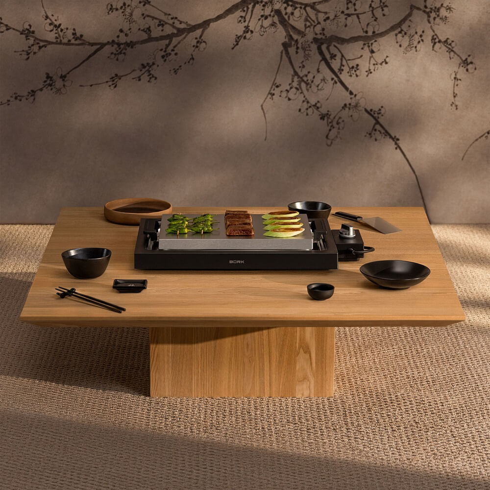 Гриль-теппан BORK G750 — стильное и функциональное устройство для приготовления блюд в японской традиции прямо у себя на кухне. Его плоская нагревательная поверхность имитирует классический теппан-яки, позволяя готовить мясо, морепродукты, овощи и даже яичницу с равномерной прожаркой и насыщенным вкусом. Компактные размеры — всего 8,8 см в высоту при ширине 57,3 см и глубине 33,4 см — обеспечивают удобное размещение на любой столешнице, не занимая много места, и позволяют легко переносить прибор при необходимости.