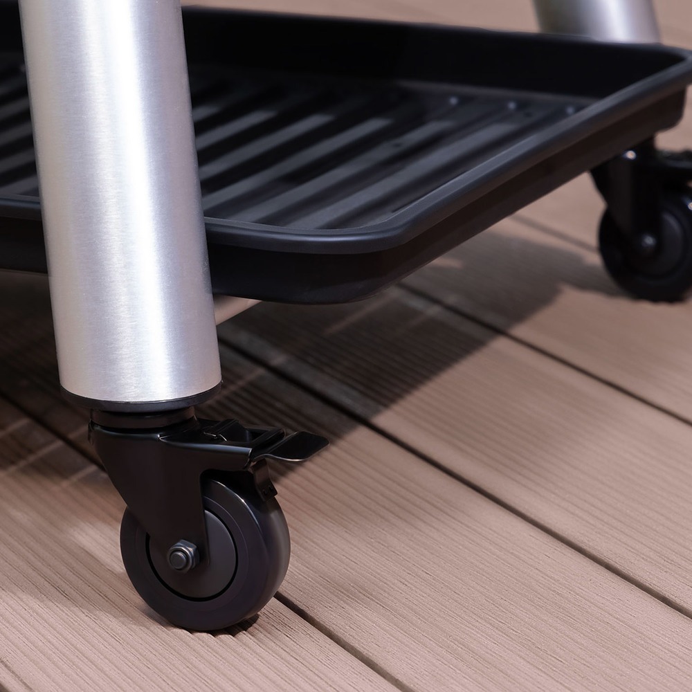 Благодаря колесам, гриль легко перемещается по территории. И хотя газовый баллон приобретается отдельно, в комплекте есть удобный чехол для его хранения.