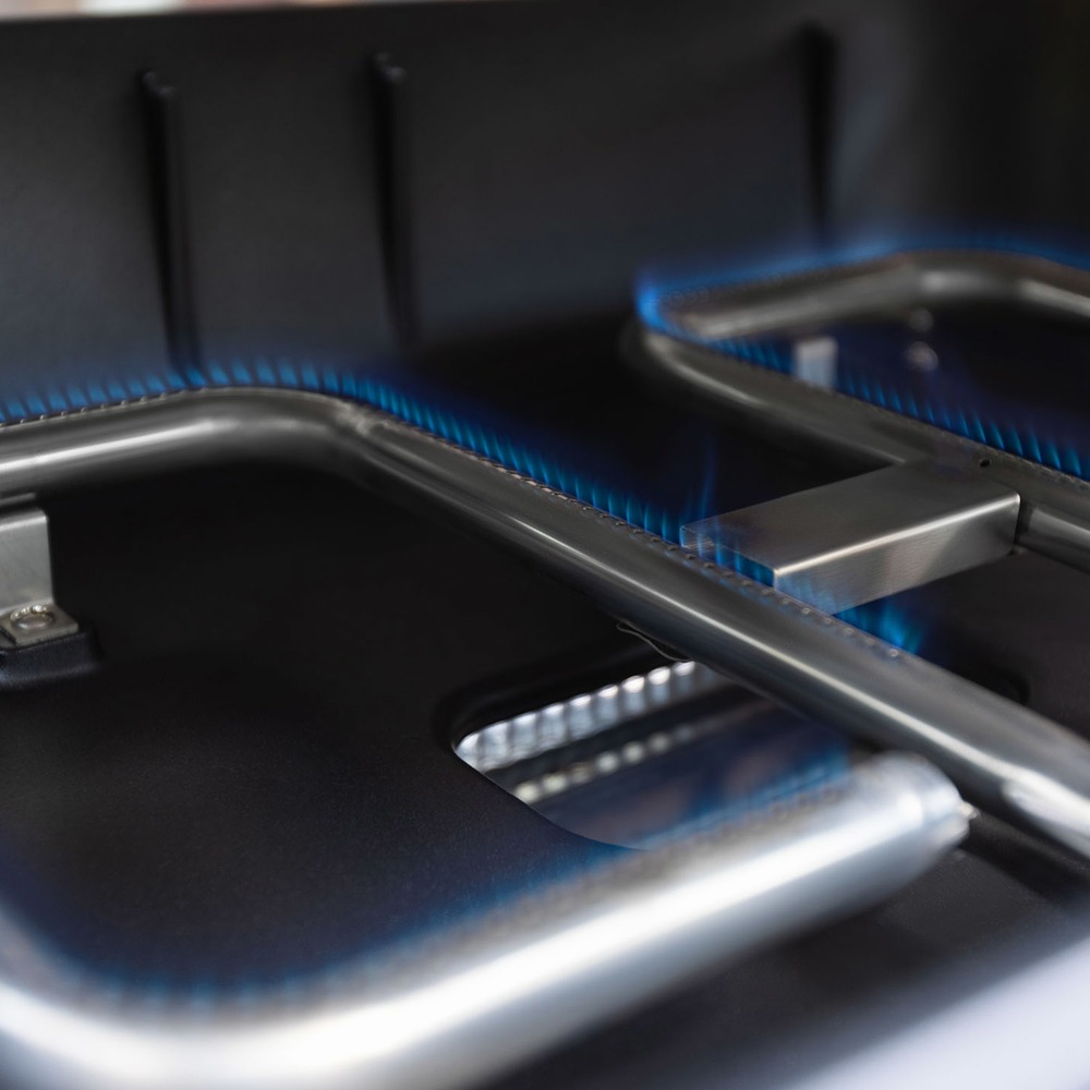 Газовый гриль с яркой оранжевой крышкой можно установить на высоких ногах и поставить на столешницу, сняв верхний модуль. Работает от пропана, баллон необходимо приобретать отдельно. Понятное управление гарантирует быстрое обслуживание и безопасную для вас работу.