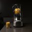 Сокоблендер Bork B806 — многофункциональный прибор, объединяющий функции блендера и центробежной соковыжималки. В стальном основании размещается двигатель мощностью 1350 Вт, способный развивать скорость до 13000 об/мин. На основании крепится универсальная чаша из тритана объемом 1,5 литра, в которой можно смешивать продукты и получать сок. Электронная панель управления с кнопками и дисплеем позволяет выбирать одну из 10 скоростей, исходя из типа продуктов. Предусмотрены кнопки для запуска программы автоочистки, а также четырех программ приготовления смузи, замороженных коктейлей и измельчения льда. Загрузочный желоб диаметром 88 мм позволяет выжимать сок из неразрезанных фруктов, экономя время. Для измельчения служат стальные ножи Kinetix, а для удаления мякоти предусмотрен мелкоячеистый фильтр.