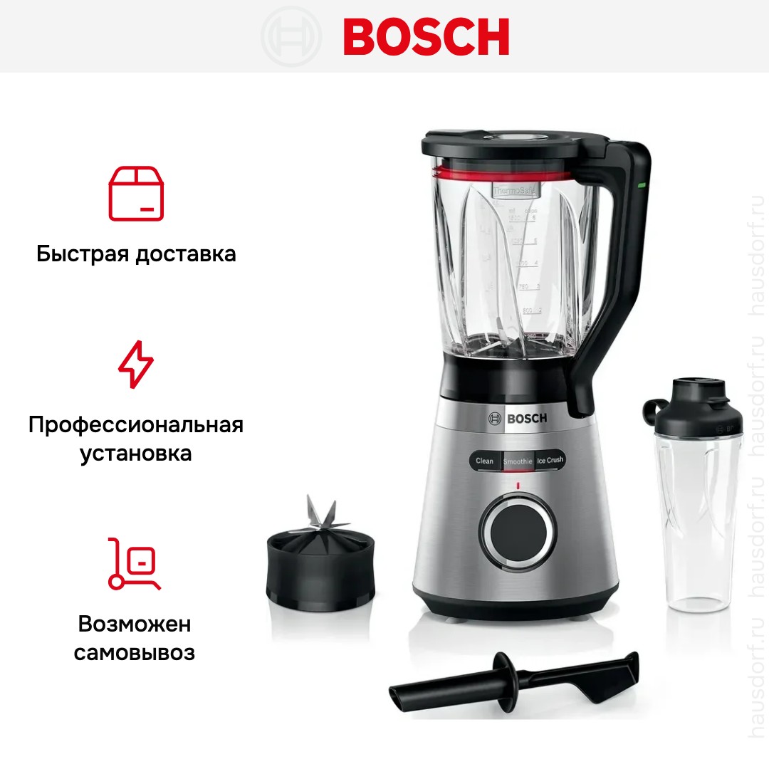 Блендер Bosch MMB6384M — мощное и надёжное решение для приготовления разнообразных блюд в домашних условиях. Этот стационарный прибор оснащён двигателем мощностью 1200 Вт, что обеспечивает быструю и эффективную переработку даже самых плотных ингредиентов: от замороженных ягод до орехов и овощей. Благодаря продуманной конструкции и качественным материалам, устройство демонстрирует высокую производительность и долговечность в повседневном использовании.[BR][BR]Модель предлагает три скоростных режима, позволяющих точно регулировать интенсивность измельчения в зависимости от типа продуктов и желаемой консистенции. Такая гибкость особенно ценится при создании крем-супов, соусов, пюре, коктейлей или теста — всё получается однородным, без комочков и с минимальными усилиями со стороны пользователя. Наличие импульсного режима даёт дополнительный контроль над процессом, обеспечивая идеальный результат даже при работе с неоднородными смесями.[BR][BR]Кувшин изготовлен из прочного и безопасного материала, устойчивого к царапинам и воздействию высоких температур. Его объём оптимален для семьи, а эргономичная форма облегчает наливание и хранение готовых блюд. Лезвия выполнены из нержавеющей стали и расположены под углом, способствующим максимальному перемешиванию содержимого без необходимости вмешательства в процесс.[BR][BR]Устройство отличается низким уровнем шума по сравнению с аналогами, что делает его комфортным в эксплуатации даже в утренние часы. Продуманная система фиксации чаши гарантирует безопасность: прибор не запустится, если ёмкость установлена неправильно. Компактные габариты позволяют разместить технику на любой кухонной поверхности без ущерба для функциональности.[BR][BR]Этот блендер станет незаменимым помощником для тех, кто ценит качество, скорость и удобство на кухне. Он идеально подходит как для повседневного приготовления простых блюд, так и для экспериментов с более сложными рецептами. Надёжность, современный дизайн и продуманная инженерия делают его отличным выбором для современного дома.