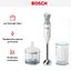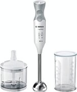 Погружной блендер Bosch позволяет готовить смузи, коктейли, смешивать соусы и заправки и многое другое. Такая конструкция требует вашего участия — нужно держать рукоятку с насадкой и контролировать направление движения. Плюс в том, что можно использовать ее прямо в кастрюле, когда готовите, например, суп-пюре. Корпус сделан в основном из пластика, что уменьшает вес прибора. Он может как влиться в общую гамму интерьера, так и стать ярким акцентом; доминирующий цвет — белый.