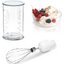 Погружной — мотор расположен в рукоятке, на конце которой есть насадка с венчиком или ножами. Вы опускаете ее в емкость и измельчаете продукты, удерживая прибор на месте, нажимая или проводя по кругу.