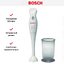 Погружной блендер Bosch позволяет готовить смузи, коктейли, смешивать соусы и заправки и многое другое. Такая конструкция требует вашего участия — нужно держать рукоятку с насадкой и контролировать направление движения. Плюс в том, что можно использовать ее прямо в кастрюле, когда готовите, например, суп-пюре. Корпус сделан в основном из пластика, что уменьшает вес прибора. Он может как влиться в общую гамму интерьера, так и стать ярким акцентом; доминирующий цвет — белый.