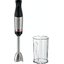 Погружной блендер Bosch позволяет готовить смузи, коктейли, смешивать соусы и заправки и многое другое. Такая конструкция требует вашего участия — нужно держать рукоятку с насадкой и контролировать направление движения. Плюс в том, что можно использовать ее прямо в кастрюле, когда готовите, например, суп-пюре. Корпус сделан в основном из металла, что повышает надежность прибора. Он может как влиться в общую гамму интерьера, так и стать ярким акцентом; доминирующий цвет — черный.