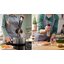 Эргономичная ручка обеспечивает надёжный хват даже при длительной работе, а её текстурированная поверхность предотвращает выскальзывание. Вес прибора сбалансирован так, чтобы минимизировать усталость кисти. Благодаря компактным размерам и отсутствию стационарной чаши, блендер не занимает место на столешнице и легко хранится в ящике.