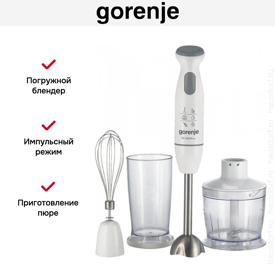 Блендер Gorenje HBC804QW — это компактный и многофункциональный погружной прибор, созданный для тех, кто ценит мобильность, точность и удобство на кухне. Мощность в 800 Вт обеспечивает эффективную обработку различных продуктов — от нежных овощей до плотных бобовых и замороженных фруктов. Благодаря эргономичному дизайну и лёгкому весу, устройство удобно держать в руке и использовать прямо в кастрюле, миске или высоком стакане, избегая лишней посуды и упрощая процесс приготовления.