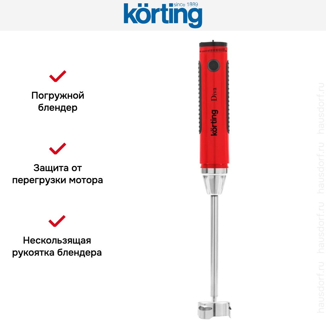 Блендер Korting KHB 0301 Diva — мощный и универсальный кухонный помощник, созданный для тех, кто ценит скорость, точность и многофункциональность в приготовлении блюд. Этот погружной прибор сочетает эргономичный дизайн, высокую производительность и интуитивное управление, позволяя легко справляться с самыми разными задачами — от измельчения овощей и взбивания сливок до приготовления супов-пюре, соусов, коктейлей и даже теста для блинов.
