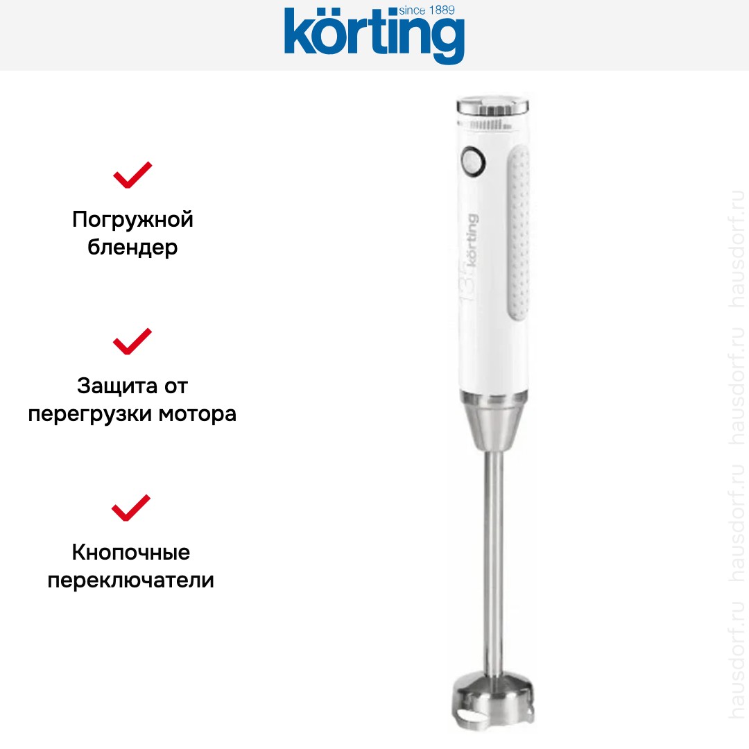 Блендер Korting KHB 0303 W 135 — высокопроизводительный погружной прибор, разработанный для тех, кто стремится к максимальной точности и универсальности в кулинарных процессах. Обладая мощностью 1000 ватт, он легко справляется с самыми разнообразными задачами: от измельчения замороженных ягод и твёрдых овощей до приготовления воздушных коктейлей, густых соусов, крем-супов, рубленого фарша и даже домашнего теста. Такая энерговооружённость обеспечивает быструю и равномерную обработку ингредиентов без остатка.
