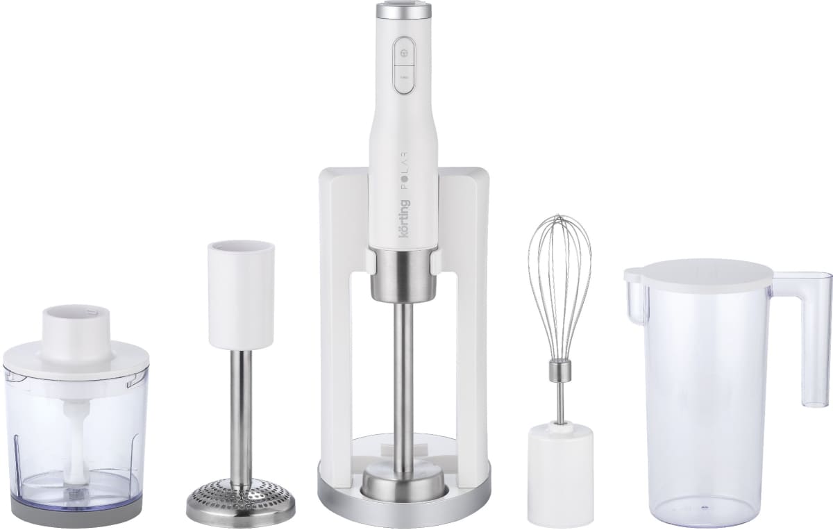 Погружной блендер Korting позволяет готовить смузи, коктейли, смешивать соусы и заправки и многое другое. Такая конструкция требует вашего участия — нужно держать рукоятку с насадкой и контролировать направление движения. Плюс в том, что можно использовать ее прямо в кастрюле, когда готовите, например, суп-пюре. Он может как влиться в общую гамму интерьера, так и стать ярким акцентом; доминирующий цвет — белый.