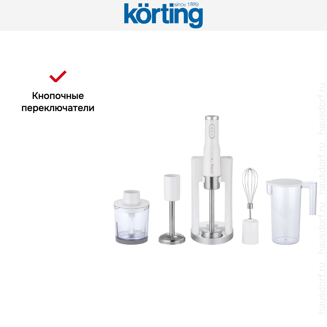 Блендер Korting KHB 0311 Polar — стильный и производительный кухонный инструмент, созданный для тех, кто ценит баланс между мощностью, простотой управления и эстетикой. Этот погружной прибор оснащён 1200-ваттным мотором, способным развивать до 15 000 оборотов в минуту, что обеспечивает быстрое и равномерное измельчение самых разных ингредиентов — от мягких фруктов и овощей до льда, орехов и варёных бобовых.