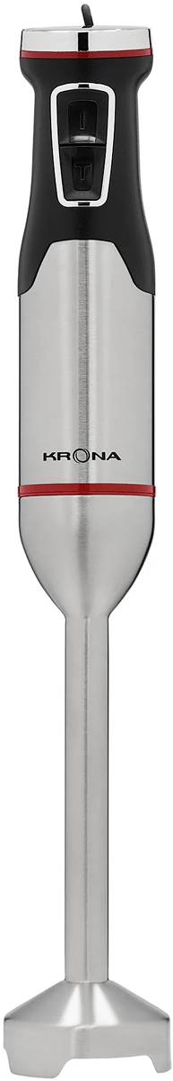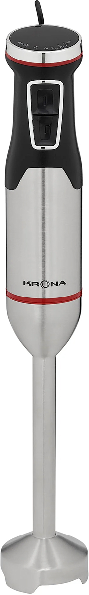 Погружной блендер KRONA позволяет готовить смузи, коктейли, смешивать соусы и заправки и многое другое. Такая конструкция требует вашего участия — нужно держать рукоятку с насадкой и контролировать направление движения. Плюс в том, что можно использовать ее прямо в кастрюле, когда готовите, например, суп-пюре. Корпус сделан в основном из пластика, что уменьшает вес прибора. Он может как влиться в общую гамму интерьера, так и стать ярким акцентом; доминирующий цвет — черный/нержавеющая сталь.