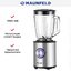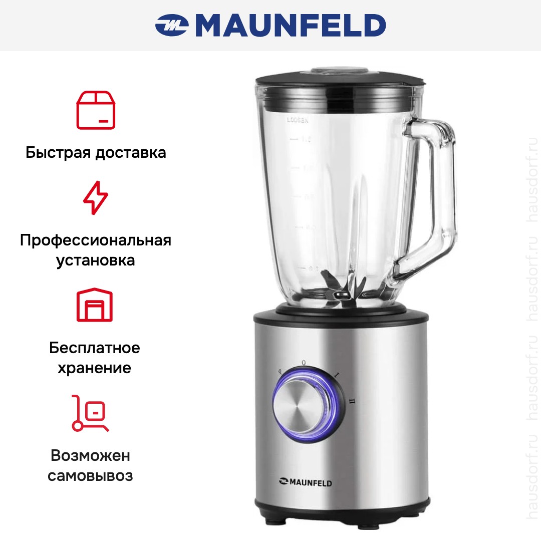 Стационарный блендер Maunfeld позволяет готовить смузи, коктейли, смешивать соусы и заправки, измельчать продукты до состояния пюре и многое другое. Его конструкция подразумевает автономную работу — вам нужно только положить овощи или фрукты и выбрать режим. Корпус сделан в основном из металла, что повышает надежность прибора. Он может как влиться в общую гамму интерьера, так и стать ярким акцентом; доминирующий цвет — нержавеющая сталь. Благодаря специальным нескользящим ножкам блендер сохраняет устойчивость даже на высоких оборотах.