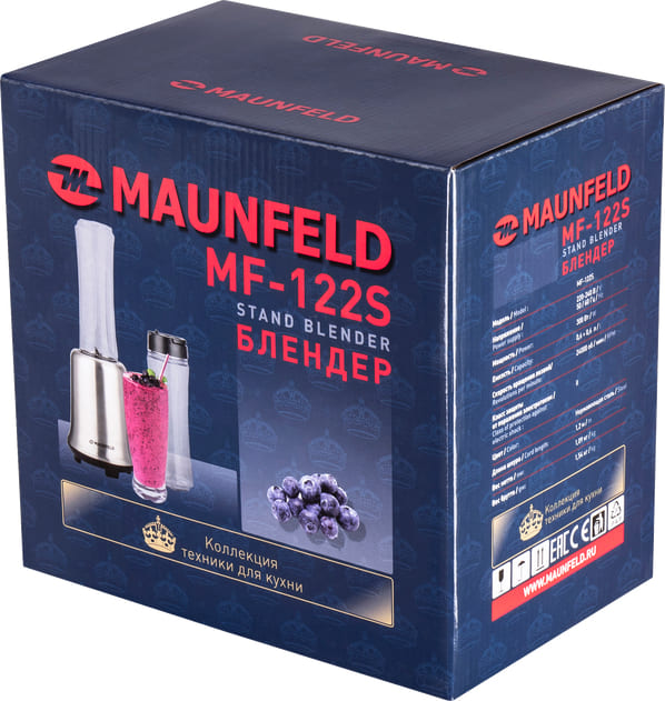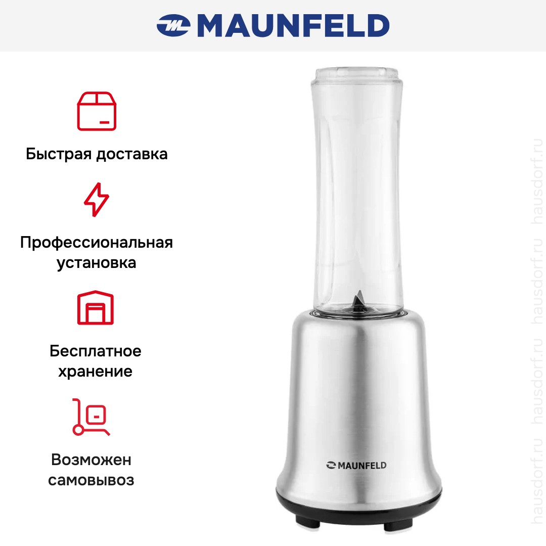 Стационарный блендер Maunfeld позволяет готовить смузи, коктейли, смешивать соусы и заправки, измельчать продукты до состояния пюре и многое другое. Его конструкция подразумевает автономную работу — вам нужно только положить овощи или фрукты и выбрать режим. Корпус сделан в основном из металла, что повышает надежность прибора. Он может как влиться в общую гамму интерьера, так и стать ярким акцентом; доминирующий цвет — нержавеющая сталь. Благодаря специальным нескользящим ножкам блендер сохраняет устойчивость даже на высоких оборотах.