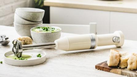 Погружной — мотор расположен в рукоятке, на конце которой есть насадка с венчиком или ножами. Вы опускаете ее в емкость и измельчаете продукты, удерживая прибор на месте, нажимая или проводя по кругу.