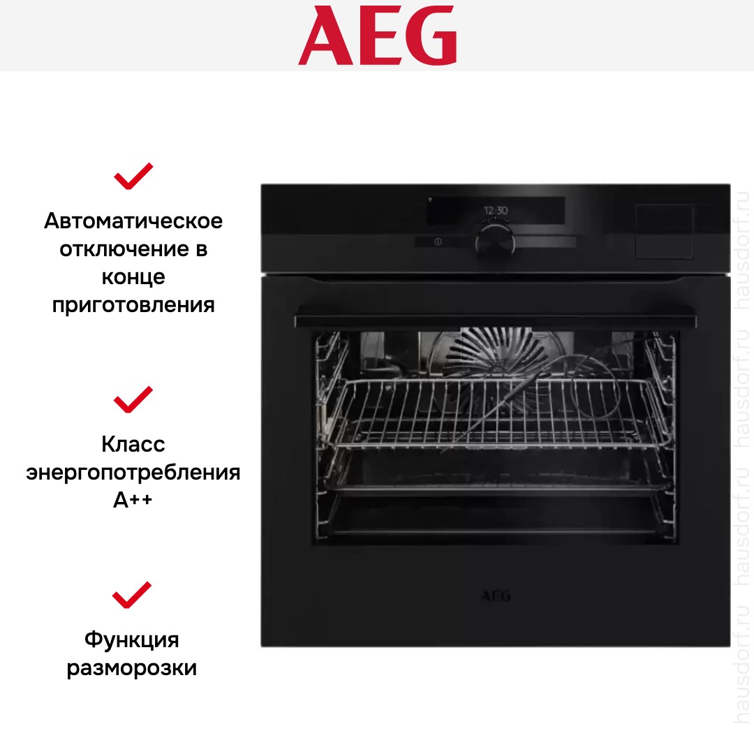 Духовой шкаф AEG BSK999330T — встраиваемый электрический прибор шириной 59, 5 см с Anti Finger-Print покрытием, снабжен термосенсором (термощупом) и внутренней web-камерой для дистанционного управления.