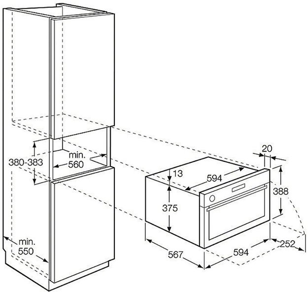 - Размеры ниши для встраивания, ВхШхГ (см): 59х56х55