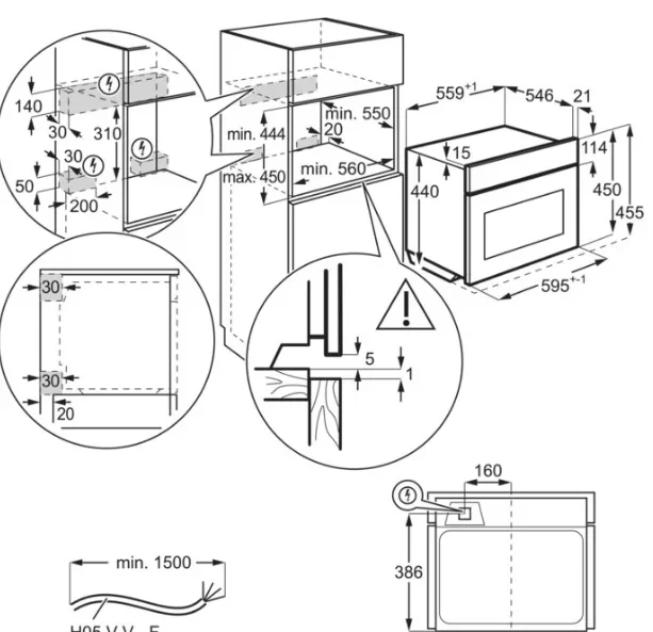 При установке требуется строго соблюдать правила техники безопасности — в частности, выдерживать размеры всех зазоров между стенками духовки и стенками мебели, необходимые для беспрепятственной циркуляции воздуха. Так, расстояние до боковых стенок мебели должно составлять не менее 0,5–1 см, а до задней стенки — не менее 4–5 см.