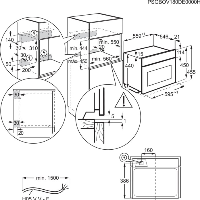 При установке духового шкафа в тумбу необходим также зазор между прибором и полом не менее 8–10 см. Если же она устанавливается в колонну, следует убедиться, что при открывании дверцы в лицо не будет ударять горячий воздух, а панель управления легко доступна. Кроме того, необходимо обеспечить свободный доступ ко всем розеткам и кабелям — они не должны размещаться непосредственно за задней стенкой духового шкафа.