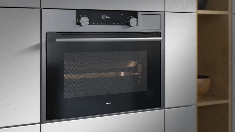 Конвекция представляет собой нагрев при помощи вентилятора и кольцевого нагревательного элемента, который располагается по периметру задней стенки рабочей камеры духовки. Вентилятор размещается внутри этого контура — с его помощью нагретый воздух равномерно распространяется по всей камере. Добавление пара происходит с помощью парогенератора. Для этого в специальную выдвижную емкость заливается вода, которая затем под действием высокой температуры превращается в пар.