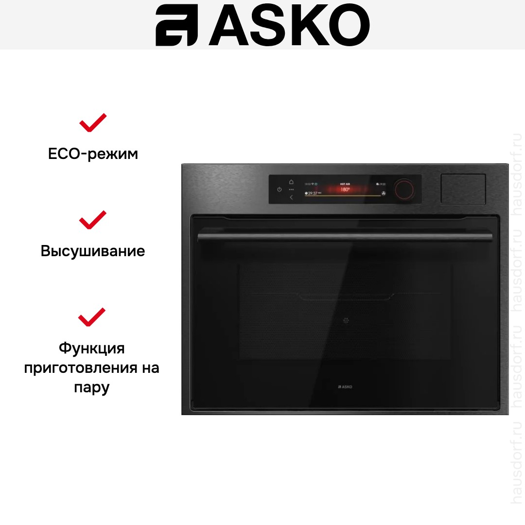 Компактный духовой шкаф ASKO OCSM64BSH создан как решение для тех, кто ценит стиль, эргономику и расширенные возможности приготовления в ограниченном пространстве: корпус в цвете черная сталь и рамка NYACraft Frame Series 6 придают прибору сдержанную премиальность, а размеры 45.8×59.7×56.4 см позволяют встроить прибор в нишу глубиной и высотой, соответствующие стандартам, не теряя при этом вместительности 50 литров и возможности работать одновременно на четырёх уровнях. Независимая электрическая конструкция совмещает 28 рабочих способов и 143 автоматические программы, среди которых — классический верхний/нижний нагрев, режим снизу, принудительная конвекция, большой гриль в паре с вентилятором и комбинированные режимы горячий воздух+пар, нагрев сверху+снизу+вентилятор+пар, что расширяет спектр блюд от запеканок до крупных кусков мяса. Для тех, кто любит готовить на пару, реализована функция приготовления на 100% пар и четыре паровых программы, а встроенный генератор Geyser Steam автоматически формирует необходимый объём влаги, при этом резервуар на 1.2 л удобен для заливки и обслуживания, и предусмотрена система очистки от накипи. Микроволновая опция с мощностью 1000 Вт и технология Stirrer позволяют ускорять процессы без поворотного стола; доступно четыре режима СВЧ и комбинированные варианты с паром, а режимы типа аэрогриль/аэрофритюр и функция 360°AirFlow обеспечивают равномерную циркуляцию и хрустящую корочку. Среди дополнительных возможностей — размораживание, поддержание температуры, подогрев посуды, режим Шаббат, ECO-режим и программы с нестандартными решениями вроде горячих камней и специальных программ для тёплых влажных полотенец, что делает прибор универсальным помощником для необычных рецептов. Управление сочетает сенсорные кнопки и поворотные регуляторы с подсветкой: есть текстовый дисплей, приложения ConnectLife.TRIR для удалённого контроля, регулировка яркости и цветовой температуры светодиодной подсветки камеры, защита от детей и холодная дверца с четырьмя стеклами и фирменной ручкой для безопасного использования. В комплект входят телескопические направляющие (однорежимные), решётка, два противня, термощуп и навесные съёмные направляющие на четыре положения, что расширяет функционал и упрощает работу с выпечкой и крупными продуктами; традиционная эмалированная облицовка внутренней камеры облегчает уход, а наличие функции очистки от накипи продлевает срок службы парового блока. Диапазон регулировки температуры 30-250 °C, длина сетевого кабеля 200 см, стандартное напряжение 220-240 В при частоте 50-60 Гц и вес около 38.9 кг подчёркивают надёжную инженерную основу, при этом упаковочные габариты 52×64×69.5 см сохраняют компактность при транспортировке. Этот прибор сочетает продуманный дизайн и профессиональные опции, позволяя экономить место без ущерба для качества приготовления разнообразных блюд.