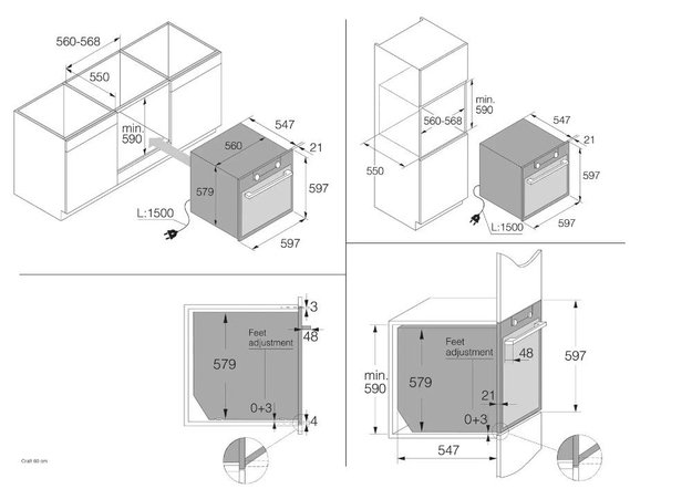 Ко всем моделям прилагаются подробные инструкции по установке, где указаны точные размеры ниши для каждой конкретной духовки.