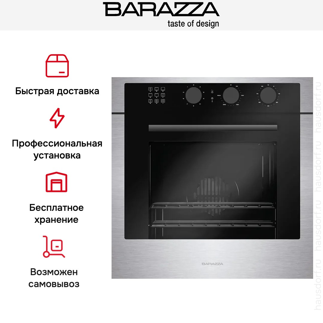 Количество режимов работы в духовом шкафу Баразза: 8. В число доступных программ входят: классический нагрев, верхний нагрев, нижний нагрев, конвекция, гриль для создания хрустящей корочки, и другие. Помимо основных программ воспользуйтесь специальными возможностями этого прибора: размораживанием продуктов, чтобы сократить время на подготовку; быстрым разогревом для ускорения работы; и другими. Тип гриля в этой модели — электрический.