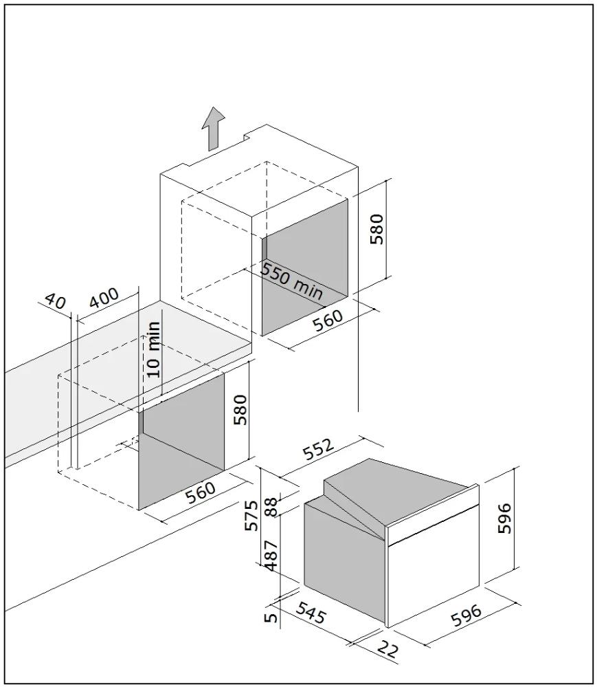 При установке требуется строго соблюдать правила техники безопасности — в частности, выдерживать размеры всех зазоров между стенками духовки и стенками мебели, необходимые для беспрепятственной циркуляции воздуха. Так, расстояние до боковых стенок мебели должно составлять не менее 0,5–1 см, а до задней стенки — не менее 4–5 см.