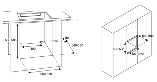 - Размеры ниши для встраивания, ВхШхГ (см): 580-585х560-570х560-580