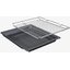 В стандартную комплектацию любого духового шкафа входят один или два противня — эмалированных или с антипригарным покрытием — и решетка. Единственный противень, как правило, имеет низкие бортики и предназначается для приготовления выпечки. Если духовка комплектуется двумя противнями, то второй отличается более высокими бортиками — его можно использовать для запекания мяса, птицы, овощных блюд. На решетке в духовке, не оснащенной грилем, обычно устанавливаются формы для запекания — стальные, керамические или стеклянные. В духовках премиум-класса количество противней может быть увеличено: к стандартному комплекту добавляются противни с перфорацией для мяса, специальные поддоны для сбора выделившегося сока.