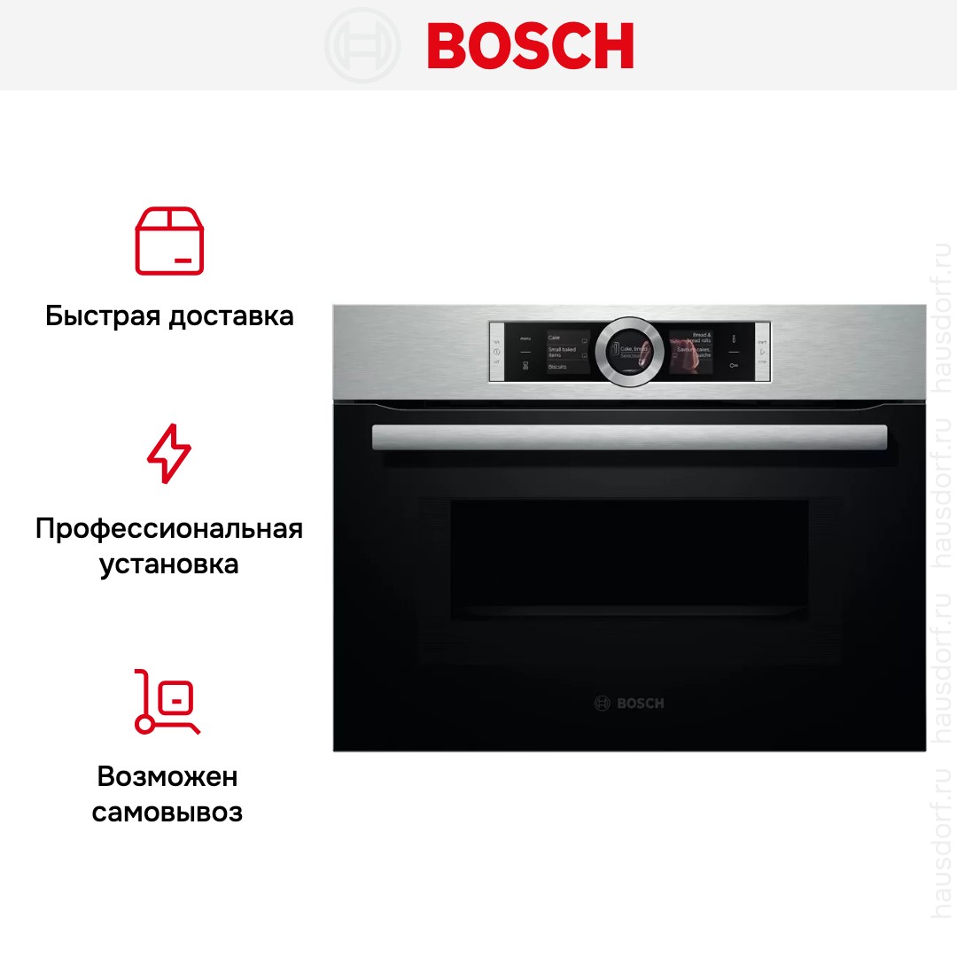 Готовьте свои лучшие блюда и пробуйте новые рецепты с духовым шкафом Bosch CMG 636BS1! Стандартные размеры и большой объем внутренней камеры — выбор тех, кто много готовит для семьи или частых праздничных встреч с друзьями. Желательно заранее продумать расположение такой модели в кухонном гарнитуре.