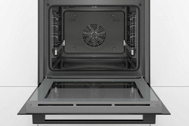 Доводчик дверцы SoftClose с амортизирующими петлями в духовых шкафах Bosch позволяет легко и бесшумно закрывать ее, не прилагая усилий. Дверца не будет хлопать, даже если ее отпустить, доводчик самостоятельно закроет ее и зафиксирует или полностью откроет для удобного размещения противней.