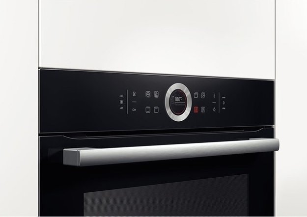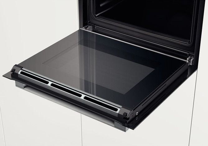 Доводчик дверцы SoftClose с амортизирующими петлями в духовых шкафах Bosch позволяет легко и бесшумно закрывать ее, не прилагая усилий. Дверца не будет хлопать, даже если ее отпустить, доводчик самостоятельно закроет ее и зафиксирует или полностью откроет для удобного размещения противней.