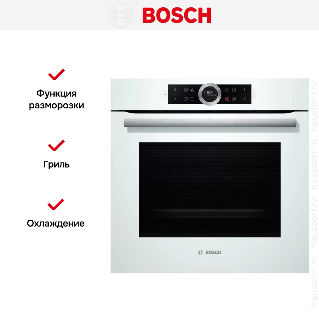 Готовьте свои лучшие блюда и пробуйте новые рецепты с духовым шкафом Bosch HBG 634BW1! Стандартные размеры и большой объем внутренней камеры — выбор тех, кто много готовит для семьи или частых праздничных встреч с друзьями. Желательно заранее продумать расположение такой модели в кухонном гарнитуре.