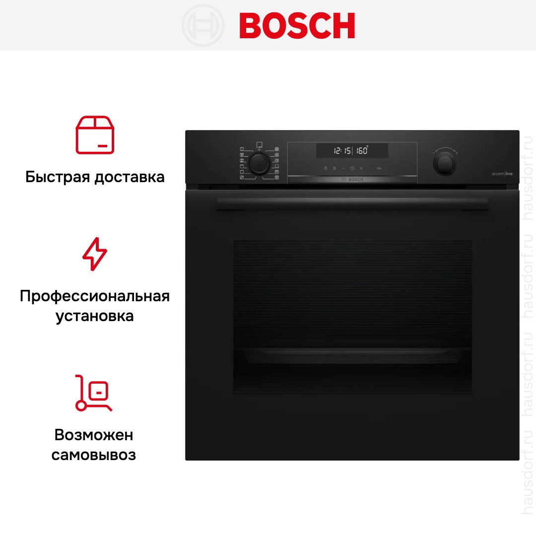 Количество режимов работы в духовом шкафу Бош: 10. В число доступных программ входят: классический нагрев, нижний нагрев, конвекция, гриль для создания хрустящей корочки, пицца, и другие. Помимо основных программ воспользуйтесь специальными возможностями этого прибора: размораживанием продуктов, чтобы сократить время на подготовку; и другими. Тип гриля в этой модели — электрический.