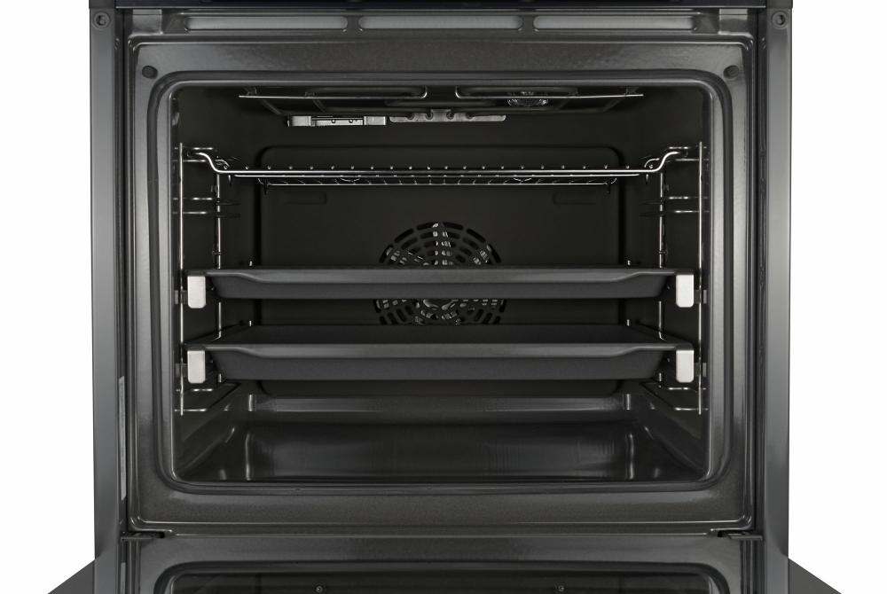 Как известно, стандартная ширина кухонной тумбы составляет около 60 см — поэтому за стандартную ширину встраиваемого духового шкафа принимают 59,5 см. Такие духовки имеют по 3–4 уровня приготовления, в них можно приготовить достаточно объемные блюда. Минимальное значение ширины духовки также соотносится с размерами тумбы для встраивания — оно составляет 44–45 см. Это хороший выбор для небольшой кухни, однако узкие духовые шкафы имеют свои недостатки — в частности, в них невозможно приготовить большой пирог или торт, запечь целый окорок, индейку или большую рыбу.
