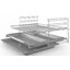 В стандартную комплектацию любого духового шкафа входят один или два противня — эмалированных или с антипригарным покрытием — и решетка. Единственный противень, как правило, имеет низкие бортики и предназначается для приготовления выпечки. Если духовка комплектуется двумя противнями, то второй отличается более высокими бортиками — его можно использовать для запекания мяса, птицы, овощных блюд. На решетке в духовке, не оснащенной грилем, обычно устанавливаются формы для запекания — стальные, керамические или стеклянные. В духовках премиум-класса количество противней может быть увеличено: к стандартному комплекту добавляются противни с перфорацией для мяса, специальные поддоны для сбора выделившегося сока.