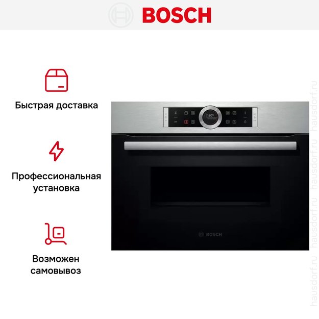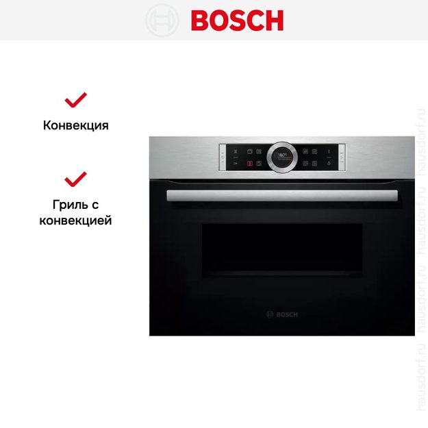 Готовьте свои лучшие блюда и пробуйте новые рецепты с духовым шкафом Bosch CMG633BS1! Стандартные размеры и большой объем внутренней камеры — выбор тех, кто много готовит для семьи или частых праздничных встреч с друзьями. Желательно заранее продумать расположение такой модели в кухонном гарнитуре.