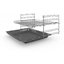 В стандартную комплектацию любого духового шкафа входят один или два противня — эмалированных или с антипригарным покрытием — и решетка. Единственный противень, как правило, имеет низкие бортики и предназначается для приготовления выпечки. Если духовка комплектуется двумя противнями, то второй отличается более высокими бортиками — его можно использовать для запекания мяса, птицы, овощных блюд. На решетке в духовке, не оснащенной грилем, обычно устанавливаются формы для запекания — стальные, керамические или стеклянные. В духовках премиум-класса количество противней может быть увеличено: к стандартному комплекту добавляются противни с перфорацией для мяса, специальные поддоны для сбора выделившегося сока.