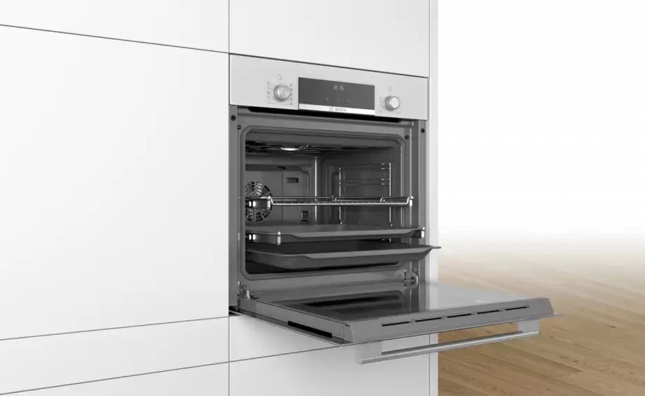 Готовьте свои лучшие блюда и пробуйте новые рецепты с духовым шкафом Bosch HBJ517YW0R! Стандартные размеры и большой объем внутренней камеры — выбор тех, кто много готовит для семьи или частых праздничных встреч с друзьями. Желательно заранее продумать расположение такой модели в кухонном гарнитуре.